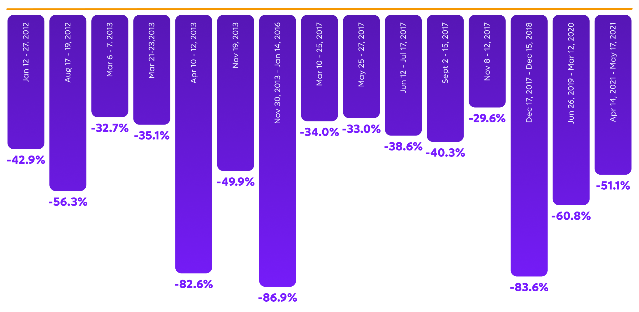 👉 Historical Bitcoin drawdowns and lessons learned: In the past, Bitcoin has repeatedly experienced very deep corrections. This is a normal part of its cycles. The most rewarding purchases took place during a bear market.