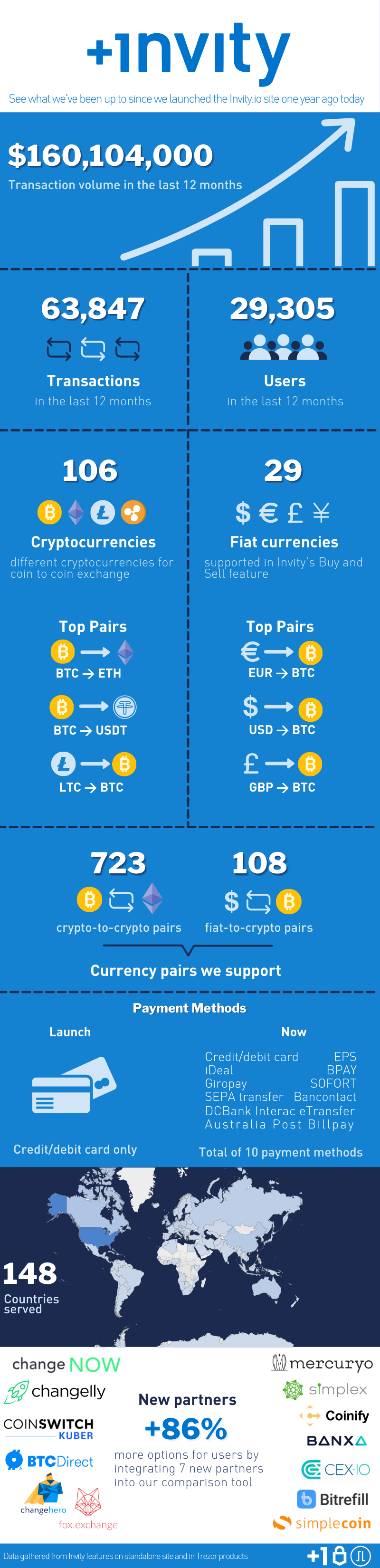 Today is a big milestone for us here at Invity: exactly one year ago today we launched our site for the world to see. In just 12 short months we've fine-tuned our platform, formed strong professional partnerships, and made tons of improvements both in front of and behind the scenes. Perhaps most important of all, we've also closed the loop of our features. Since day one, Invity users have been able to buy Bitcoin instantly and exchange crypto too, but just last month we rolled out our Sell crypto feature. This means that we have delivered on our promise of providing a one-stop shop for crypto transactions.